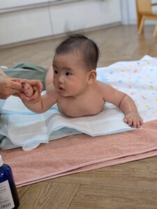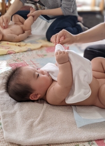 ベビーマッサージが初めての赤ちゃんは、初回は少し緊張することもあります。