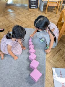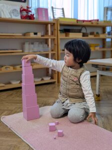 また、感覚教具は組み合わせて使うこともでき、子どもたちは自分で考え、工夫しながら活動を広げていきます。感覚教育は、子どもが主体的に学び、考える力を育てる大切な土台となるのです。
