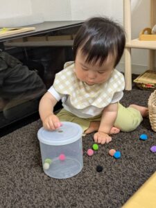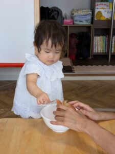 水を注ぐ、洋服をたたむ、靴をそろえるなど、日常の中での一つひとつの動きを丁寧に経験できるようにしています。